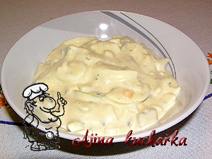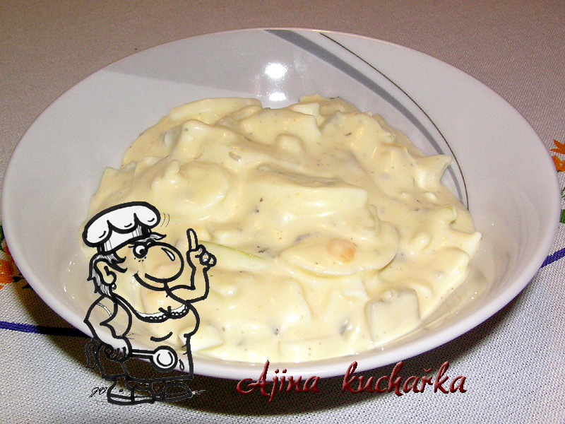 Vejce nakrájíme na kolečka a ta překrojíme, z bílků máme půlměsíčky. Podáváme s rohlíkem. Po velikonocích dělám tento salát z většího množství vajíček. |